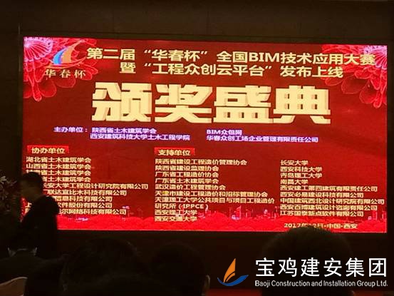 2017年12月14日,在西安·華山國際酒店舉行的第二屆“華春杯”全國BIM技術(shù)應(yīng)用大賽終審答辯落下帷幕。本次比賽,施工組只產(chǎn)生兩個一等獎,分別是中建鋼結(jié)構(gòu)和中鐵十七局,由公司發(fā)布的《太白縣城市綜合體項(xiàng)目BIM作品》榮獲大賽二等獎的優(yōu)異成績,該項(xiàng)目的申報是公司技術(shù)部、安裝公司、第六項(xiàng)目部、路橋公司等部門2個月共同努力下完成的。