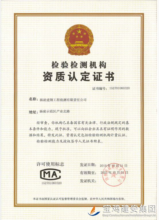楊凌建翔工程檢測有限責(zé)任有限公司,由陜西省楊凌示范區(qū)規(guī)劃建設(shè)局批準(zhǔn),于2012年12月在陜西省楊凌示范區(qū)工商行政管理局注冊成立的股份制企業(yè),具有獨(dú)立法人資格的檢測機(jī)構(gòu)。并于2015年1月通過陜西省質(zhì)量技術(shù)監(jiān)督局的認(rèn)評取得計(jì)量認(rèn)證證書。本公司主要從事工業(yè)與民用建筑工程各項(xiàng)試驗(yàn)檢測業(yè)務(wù)。