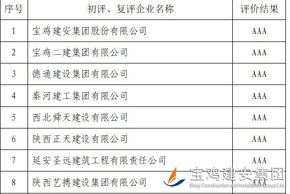 據(jù)悉,2022年度,參評(píng)企業(yè)范圍涵蓋了全省9個(gè)地市,涉及房建、市政、交通、鐵路等多個(gè)行業(yè)(專(zhuān)業(yè)),分布更加均衡,尤其是今年申報(bào)信用評(píng)價(jià)的企業(yè)數(shù)量創(chuàng)歷年來(lái)新高,企業(yè)參與度更加積極,競(jìng)爭(zhēng)更加強(qiáng)烈。寶雞建安集團(tuán)股份有限公司再次獲得殊榮,首先來(lái)自于集團(tuán)領(lǐng)導(dǎo)的高度重視和指導(dǎo),其次與各部室通力協(xié)作密不可分,大家齊心協(xié)力,同心同德,不計(jì)得失,甘于奉獻(xiàn),充分展示了并肩協(xié)作的工作作風(fēng)。陜西省建筑施工企業(yè)信用AAA級(jí)榮譽(yù)的獲得,必將進(jìn)一步激發(fā)廣大員工追求卓越、勇攀高峰的拼搏精神,不斷為企業(yè)更快更好發(fā)展奉獻(xiàn)自身的智慧和力量!